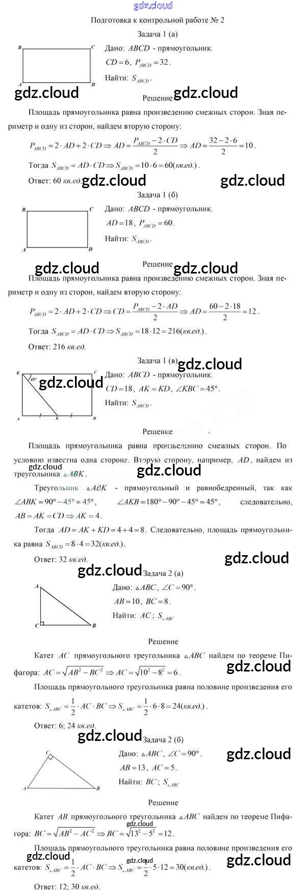Ответы к контрольной работе №2 по Геометрии 8 класс Учебник Казаков Народная асвета