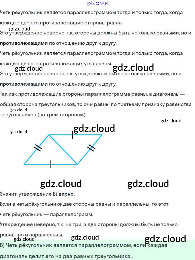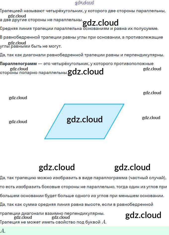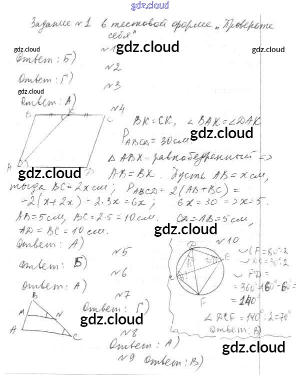 Проверь себя Ответы. Глава 1. Четырехугольники по Геометрии 8 класс Учебник Мерзляк Алгоритм успеха Вентана-граф