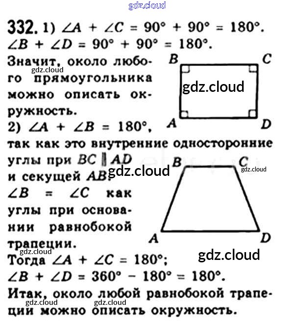 Ответ на задание 332 Учебник Геометрия за 8 (восьмой) класс Мерзляк, Полонский, Якир Алгоритм успеха 2015