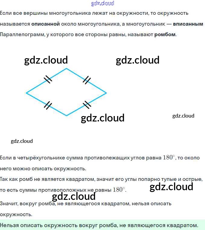 § 10. Описанная и вписанная окружности четырехугольника Ответы. Глава 1. Четырехугольники по Геометрии 8 класс Учебник Мерзляк Алгоритм успеха Вентана-граф