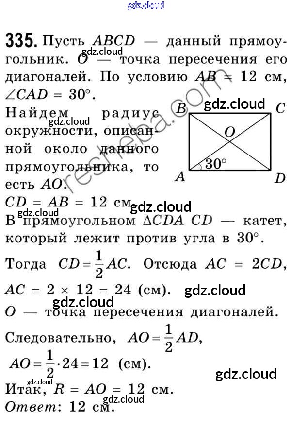 Ответ на задание 335 Учебник Геометрия за 8 (восьмой) класс Мерзляк, Полонский, Якир Алгоритм успеха 2015