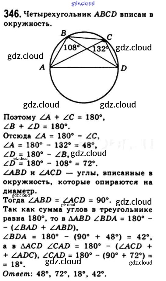 Ответ на задание 346 Учебник Геометрия за 8 (восьмой) класс Мерзляк, Полонский, Якир Алгоритм успеха 2015