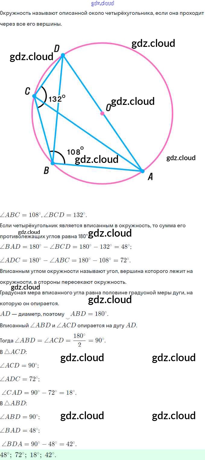 § 10. Описанная и вписанная окружности четырехугольника Ответы. Глава 1. Четырехугольники по Геометрии 8 класс Учебник Мерзляк Алгоритм успеха Вентана-граф