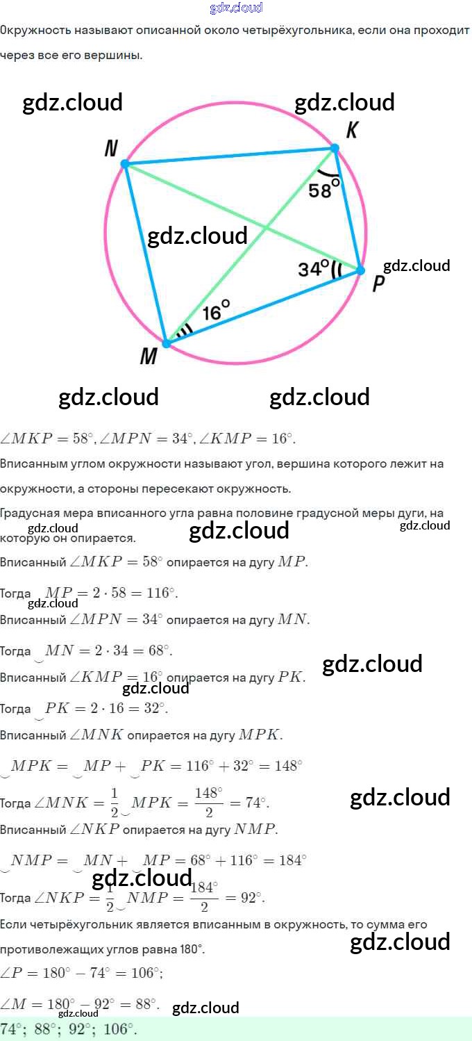 § 10. Описанная и вписанная окружности четырехугольника Ответы. Глава 1. Четырехугольники по Геометрии 8 класс Учебник Мерзляк Алгоритм успеха Вентана-граф