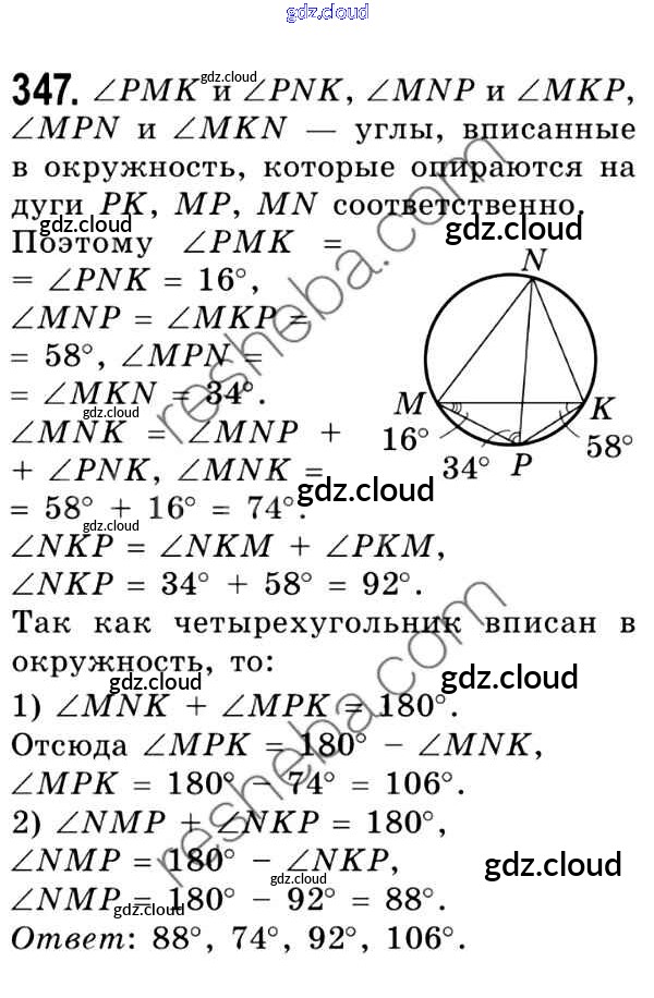 Ответ на задание 347 Учебник Геометрия за 8 (восьмой) класс Мерзляк, Полонский, Якир Алгоритм успеха 2015