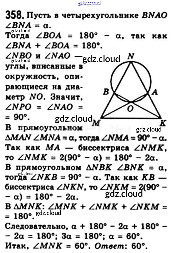 Ответ на задание 358 Учебник Геометрия за 8 (восьмой) класс Мерзляк, Полонский, Якир Алгоритм успеха 2015