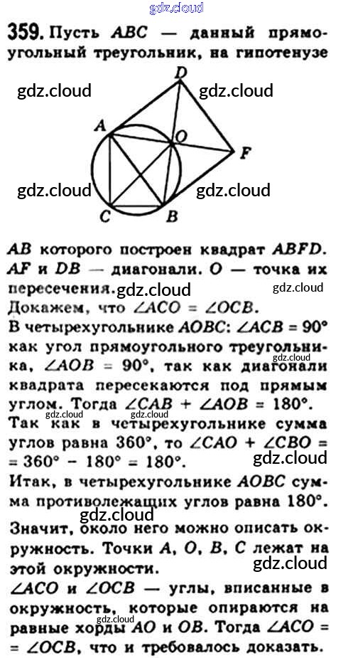 Ответ на задание 359 Учебник Геометрия за 8 (восьмой) класс Мерзляк, Полонский, Якир Алгоритм успеха 2015