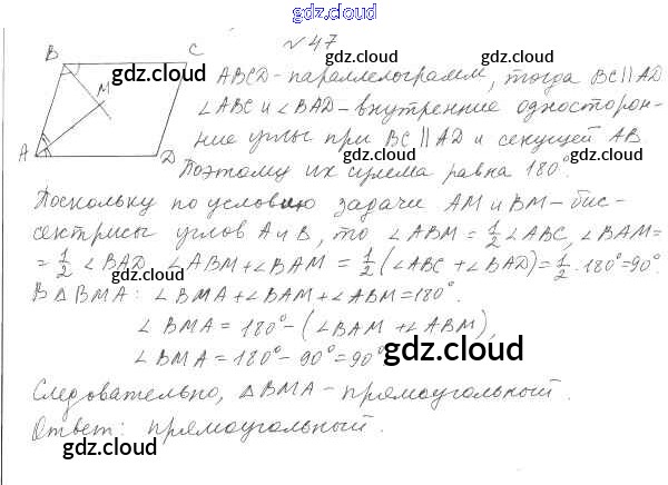 Ответ на задание 47 Учебник Геометрия за 8 (восьмой) класс Мерзляк, Полонский, Якир Алгоритм успеха 2015