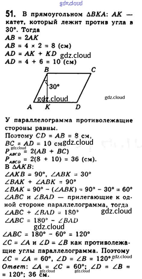 Ответ на задание 51 Учебник Геометрия за 8 (восьмой) класс Мерзляк, Полонский, Якир Алгоритм успеха 2015