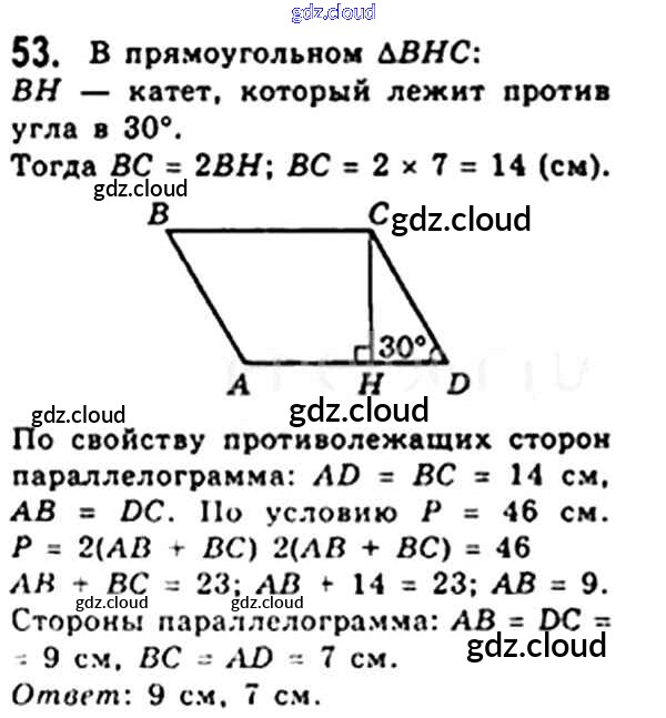 Ответ на задание 53 Учебник Геометрия за 8 (восьмой) класс Мерзляк, Полонский, Якир Алгоритм успеха 2015