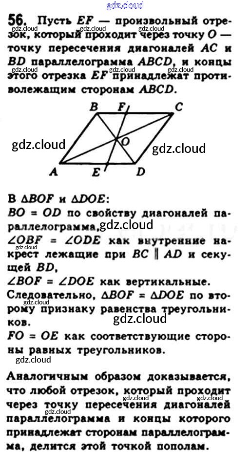 Ответ на задание 56 Учебник Геометрия за 8 (восьмой) класс Мерзляк, Полонский, Якир Алгоритм успеха 2015