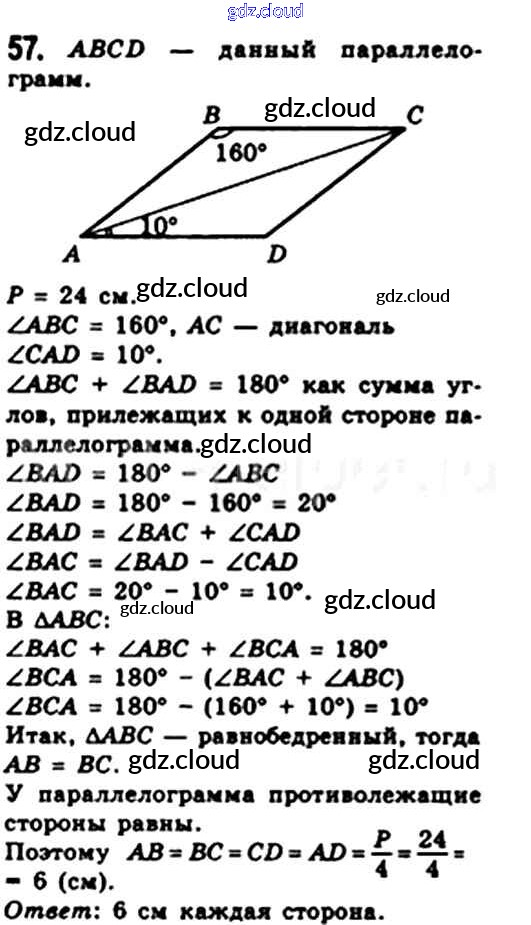 Ответ на задание 57 Учебник Геометрия за 8 (восьмой) класс Мерзляк, Полонский, Якир Алгоритм успеха 2015