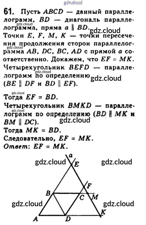 Ответ на задание 61 Учебник Геометрия за 8 (восьмой) класс Мерзляк, Полонский, Якир Алгоритм успеха 2015