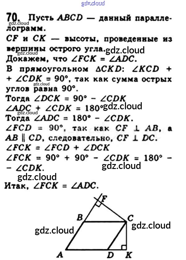 Ответ на задание 70 Учебник Геометрия за 8 (восьмой) класс Мерзляк, Полонский, Якир Алгоритм успеха 2015