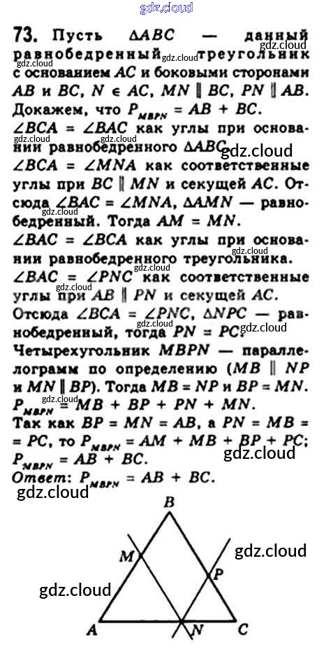 Ответ на задание 73 Учебник Геометрия за 8 (восьмой) класс Мерзляк, Полонский, Якир Алгоритм успеха 2015