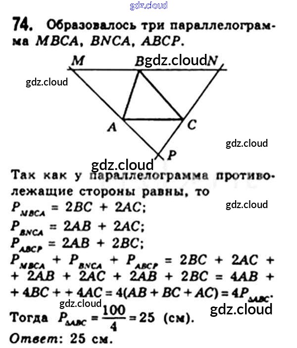 Ответ на задание 74 Учебник Геометрия за 8 (восьмой) класс Мерзляк, Полонский, Якир Алгоритм успеха 2015