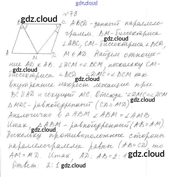 Ответ на задание 78 Учебник Геометрия за 8 (восьмой) класс Мерзляк, Полонский, Якир Алгоритм успеха 2015