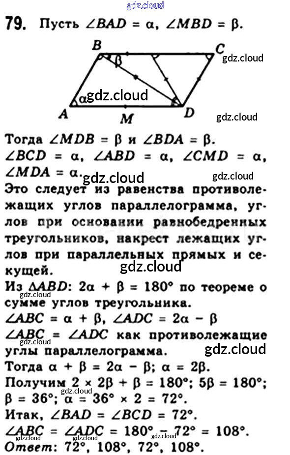Ответ на задание 79 Учебник Геометрия за 8 (восьмой) класс Мерзляк, Полонский, Якир Алгоритм успеха 2015