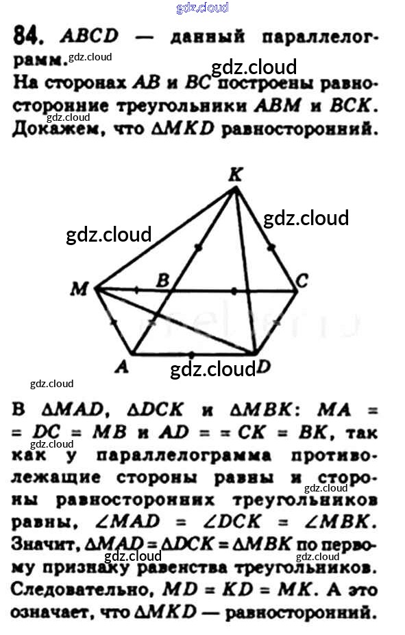 Ответ на задание 84 Учебник Геометрия за 8 (восьмой) класс Мерзляк, Полонский, Якир Алгоритм успеха 2015