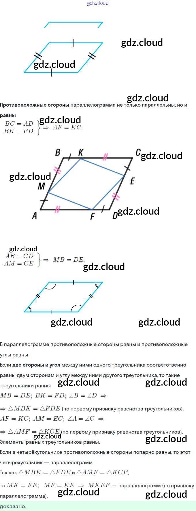§ 3. Признаки параллелограмма Ответы. Глава 1. Четырехугольники по Геометрии 8 класс Учебник Мерзляк Алгоритм успеха Вентана-граф
