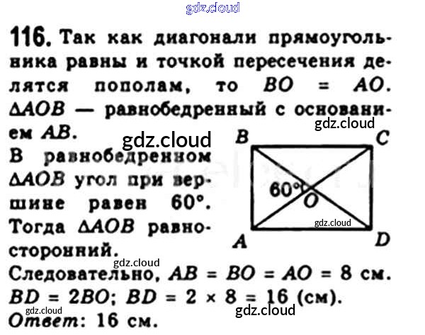 Ответ на задание 116 Учебник Геометрия за 8 (восьмой) класс Мерзляк, Полонский, Якир Алгоритм успеха 2015