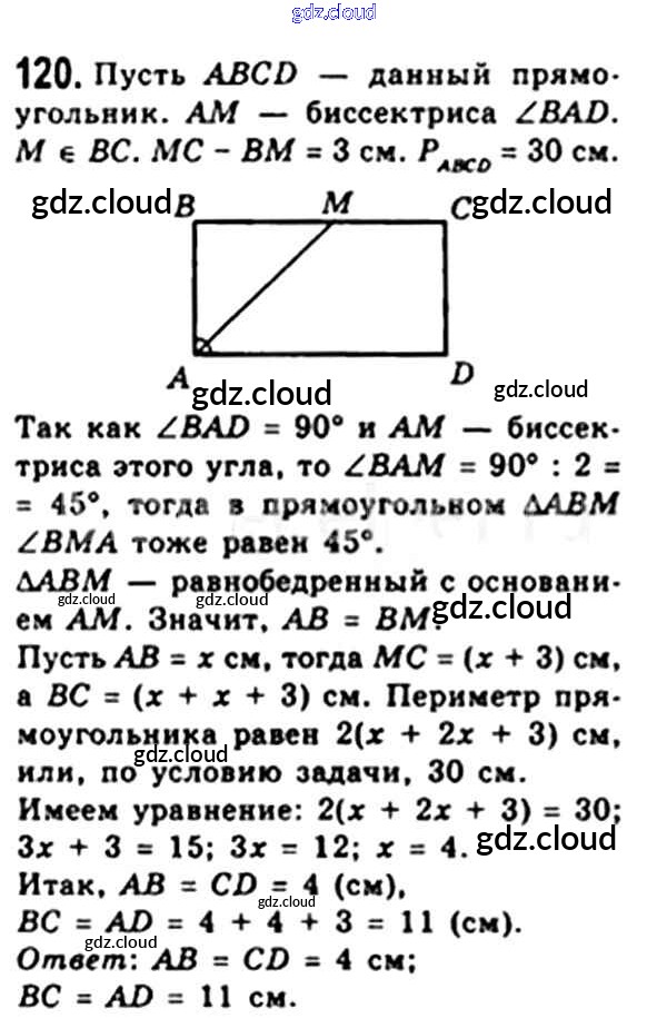 Ответ на задание 120 Учебник Геометрия за 8 (восьмой) класс Мерзляк, Полонский, Якир Алгоритм успеха 2015