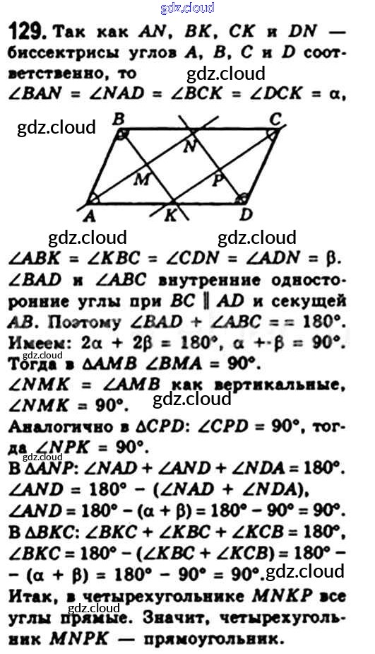 Ответ на задание 129 Учебник Геометрия за 8 (восьмой) класс Мерзляк, Полонский, Якир Алгоритм успеха 2015