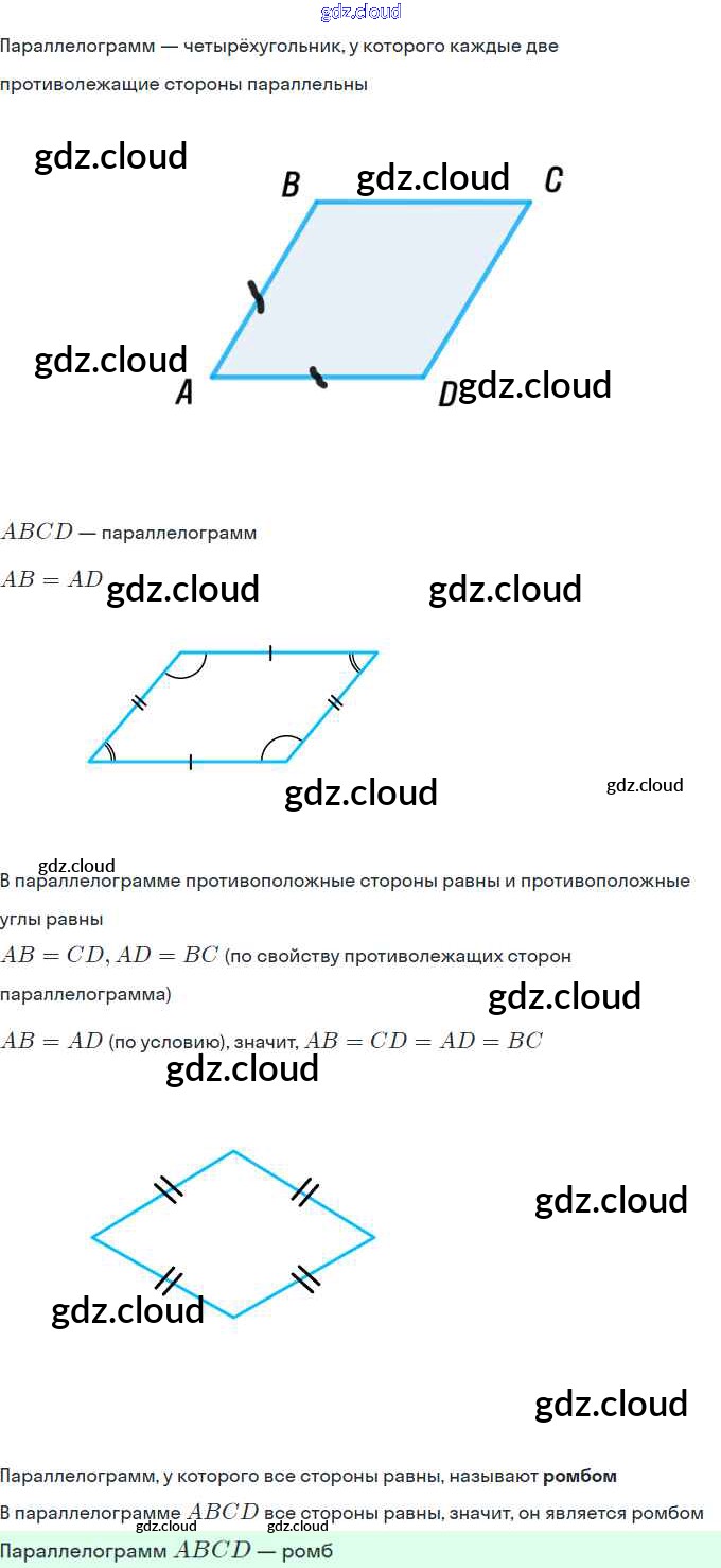 § 5. Ромб Ответы. Глава 1. Четырехугольники по Геометрии 8 класс Учебник Мерзляк Алгоритм успеха Вентана-граф