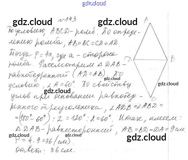 Ответ на задание 143 Учебник Геометрия за 8 (восьмой) класс Мерзляк, Полонский, Якир Алгоритм успеха 2015
