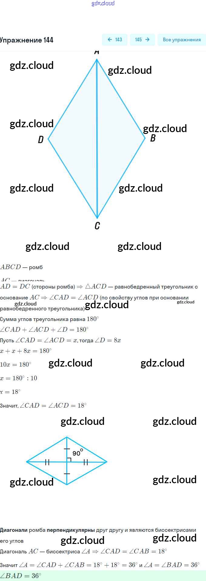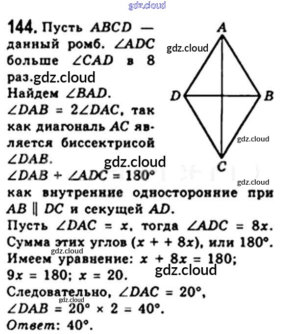 Ответ на задание 144 Учебник Геометрия за 8 (восьмой) класс Мерзляк, Полонский, Якир Алгоритм успеха 2015