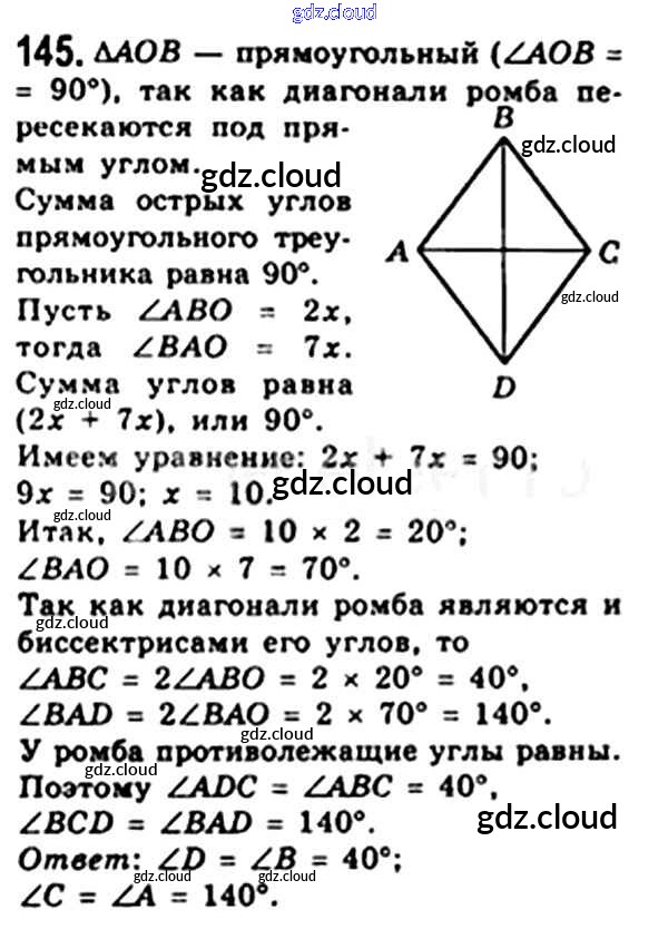 Ответ на задание 145 Учебник Геометрия за 8 (восьмой) класс Мерзляк, Полонский, Якир Алгоритм успеха 2015