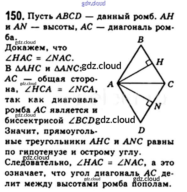 Ответ на задание 150 Учебник Геометрия за 8 (восьмой) класс Мерзляк, Полонский, Якир Алгоритм успеха 2015