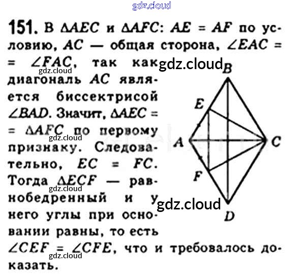 Ответ на задание 151 Учебник Геометрия за 8 (восьмой) класс Мерзляк, Полонский, Якир Алгоритм успеха 2015