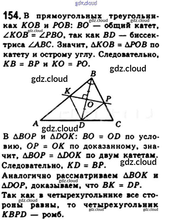 Ответ на задание 154 Учебник Геометрия за 8 (восьмой) класс Мерзляк, Полонский, Якир Алгоритм успеха 2015