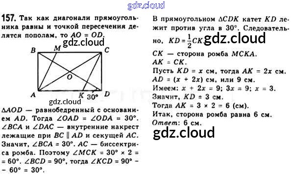 Ответ на задание 157 Учебник Геометрия за 8 (восьмой) класс Мерзляк, Полонский, Якир Алгоритм успеха 2015