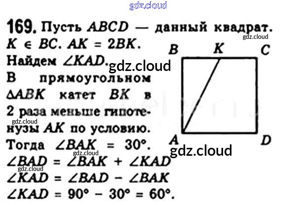 Ответ на задание 169 Учебник Геометрия за 8 (восьмой) класс Мерзляк, Полонский, Якир Алгоритм успеха 2015