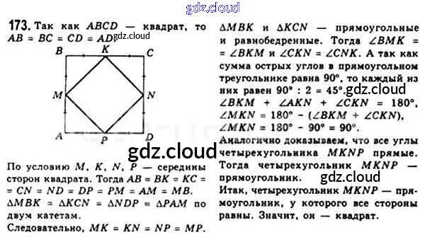 Ответ на задание 173 Учебник Геометрия за 8 (восьмой) класс Мерзляк, Полонский, Якир Алгоритм успеха 2015
