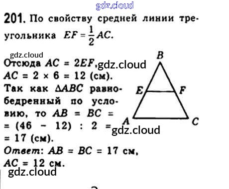 Ответ на задание 201 Учебник Геометрия за 8 (восьмой) класс Мерзляк, Полонский, Якир Алгоритм успеха 2015