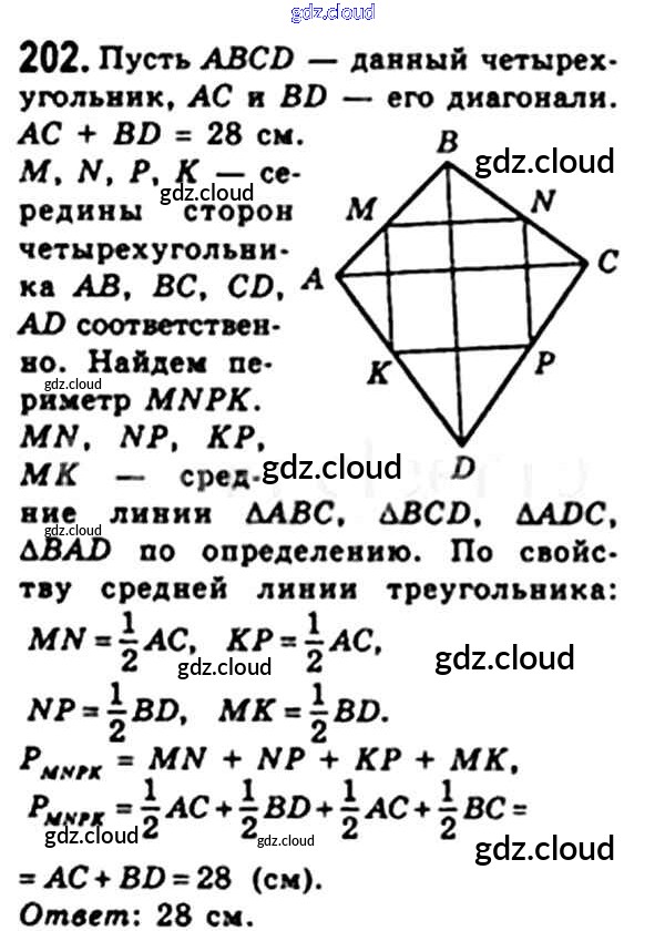 Ответ на задание 202 Учебник Геометрия за 8 (восьмой) класс Мерзляк, Полонский, Якир Алгоритм успеха 2015