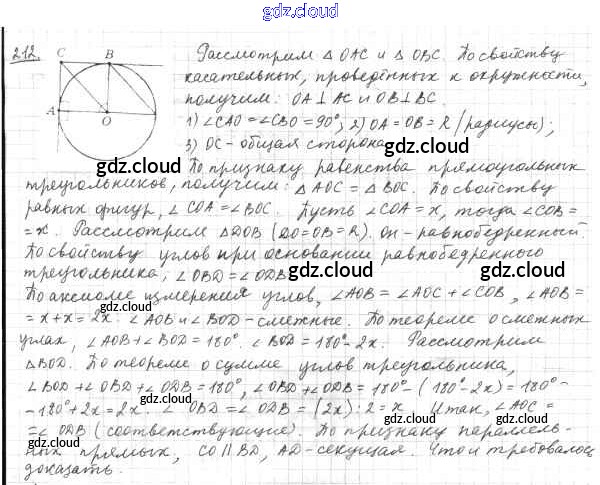 Ответ на задание 212 Учебник Геометрия за 8 (восьмой) класс Мерзляк, Полонский, Якир Алгоритм успеха 2015