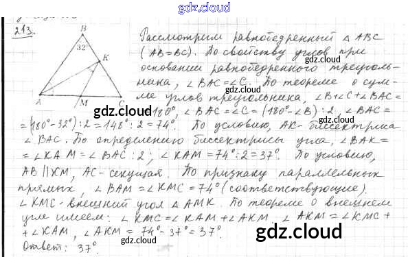Ответ на задание 213 Учебник Геометрия за 8 (восьмой) класс Мерзляк, Полонский, Якир Алгоритм успеха 2015