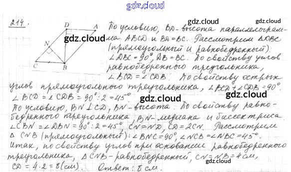 Ответ на задание 214 Учебник Геометрия за 8 (восьмой) класс Мерзляк, Полонский, Якир Алгоритм успеха 2015