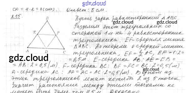 Ответ на задание 215 Учебник Геометрия за 8 (восьмой) класс Мерзляк, Полонский, Якир Алгоритм успеха 2015