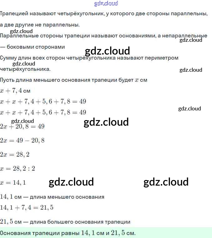 § 8. Трапеция Ответы. Глава 1. Четырехугольники по Геометрии 8 класс Учебник Мерзляк Алгоритм успеха Вентана-граф