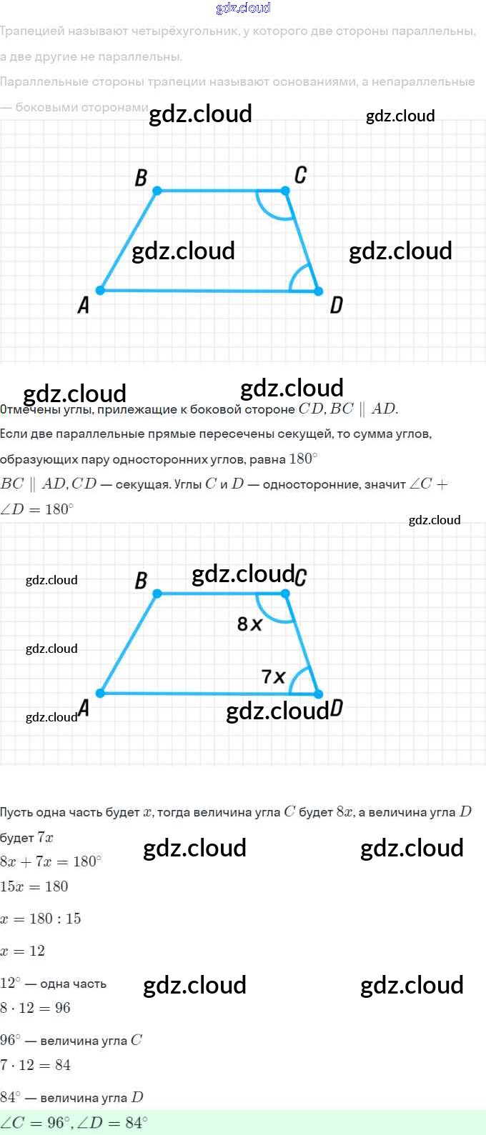 § 8. Трапеция Ответы. Глава 1. Четырехугольники по Геометрии 8 класс Учебник Мерзляк Алгоритм успеха Вентана-граф