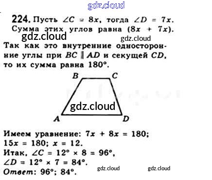 Ответ на задание 224 Учебник Геометрия за 8 (восьмой) класс Мерзляк, Полонский, Якир Алгоритм успеха 2015