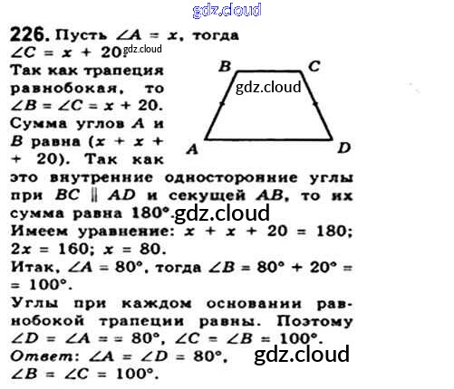 Ответ на задание 226 Учебник Геометрия за 8 (восьмой) класс Мерзляк, Полонский, Якир Алгоритм успеха 2015