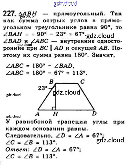 Ответ на задание 227 Учебник Геометрия за 8 (восьмой) класс Мерзляк, Полонский, Якир Алгоритм успеха 2015