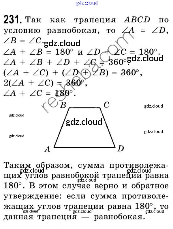 Ответ на задание 231 Учебник Геометрия за 8 (восьмой) класс Мерзляк, Полонский, Якир Алгоритм успеха 2015