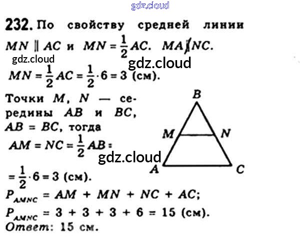 Ответ на задание 232 Учебник Геометрия за 8 (восьмой) класс Мерзляк, Полонский, Якир Алгоритм успеха 2015